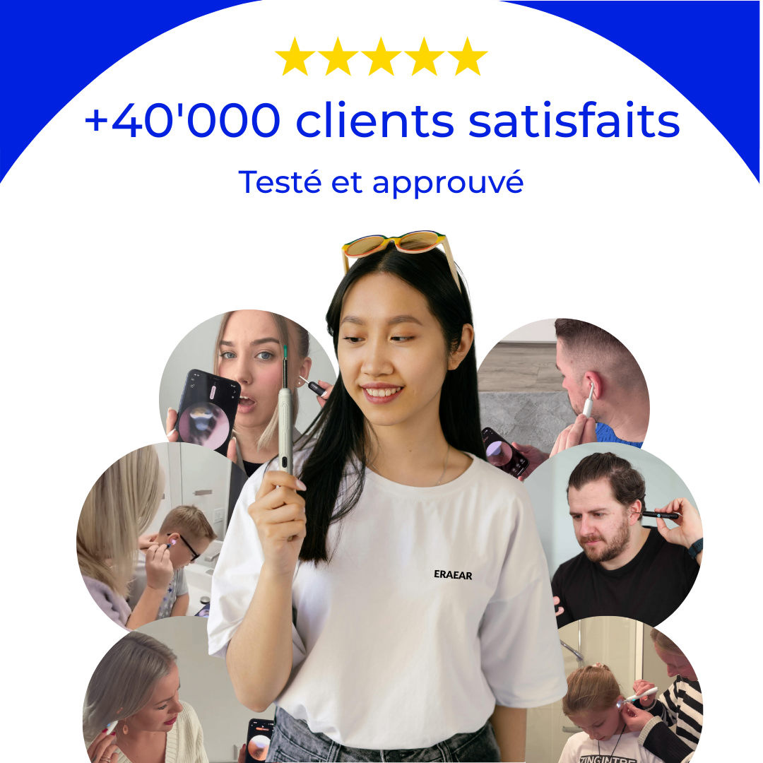 Soutenu par des années de recherche et approuvé par des milliers de clients, c'est le seul outil d'élimination du cérumen qui vous permet de voir l'intérieur de vos oreilles en toute clarté.