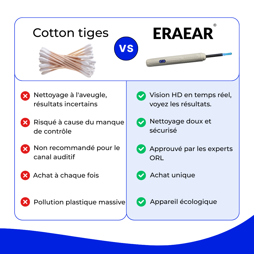 Avec Eraear, obtenez une vue claire de l'intérieur de votre oreille et retirez le cérumen en toute sécurité, sans douleur, comme un pro.