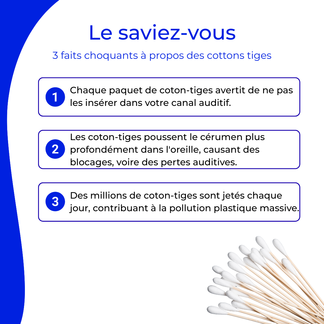 Absolument. C'est plus sûr, plus écologique et vous permet de voir ce que vous nettoyez. Contrairement aux cotons-tiges, qui enfoncent le cérumen plus profondément dans l'oreille, cet outil permet de l'éliminer en toute sécurité.
